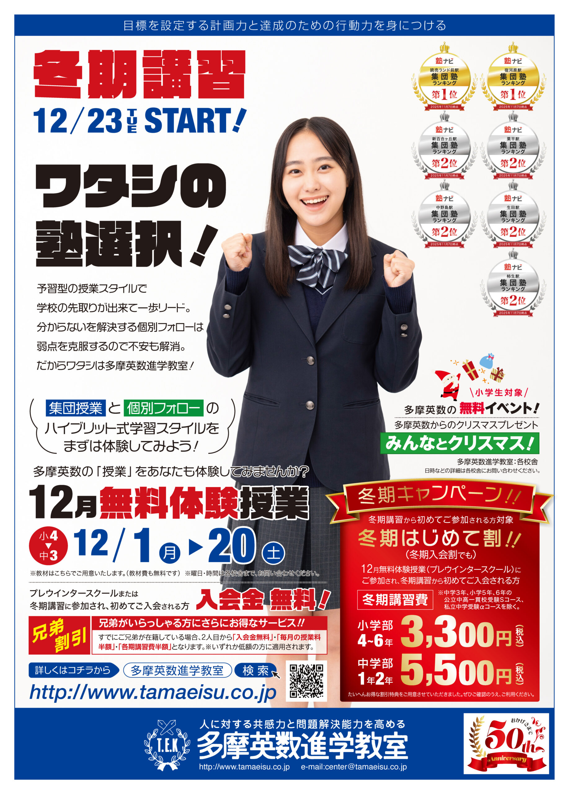 多摩英数進学教室宿河原校では12月体験生を募集しています。